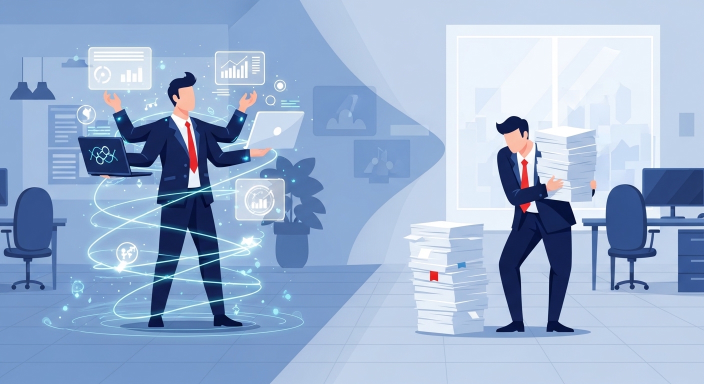 진정한 위협은 AI 그 자체가 아니라, AI를 능숙하게 다루는 동료들입니다. 제가 컨설팅에서 직접 목격한 사례인데요. 똑같은 데이터 분석 업무를 맡은 두 팀원 중, 한 명은 수기로, 다른 한 명은 AI 툴로 몇 시간 만에 방대한 데이터를 분석하고 보고서를 만들었어요. AI 활용 팀원이 훨씬 빠르고 정확하게 깊이 있는 인사이트를 제공했죠.